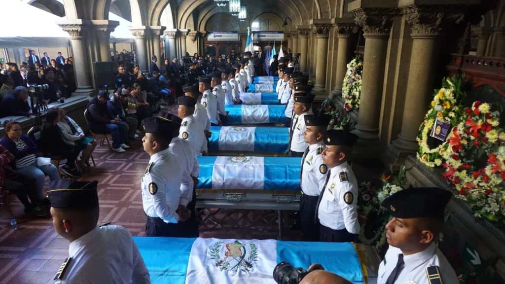 Rinden honras fúnebres para despedir a los 8 agentes de la PNC muertos en ataque terrorista perpetuado por “El Barrio 18”