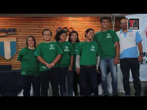 Dos aficionados guatemaltecos que viajaron a Barcelona para ver el partido de vuelta de octavos de final de la Liga de Campeones de Europa entre el Barsa y el PSG muestran su alegría después de la remontada del cuadro catalán.