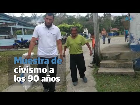 Con un costal en las manos llegó don Magdaleno Chun de 90 años, a ejercer el voto en la Consulta Popular 2018, en el municipio de San Luis, Petén. Reconoció que sus hijos viven en territorio beliceño donde se dedican a trabajar la tierra.