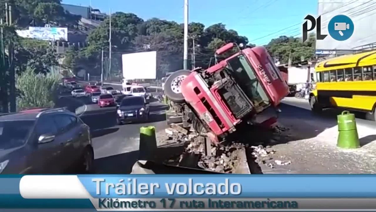 Accidente de tráiler dificulta paso en Mixco
