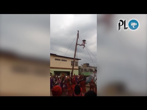 Un actor que representaba a Jesús cayó de una altura superior a los 4 metros. El accidente ocurrió en el municipio de Santa Bárbara, Suchitepéquez, en la actividad de los judíos. (Video Prensa Libre: Carmen Morales, facebook)
