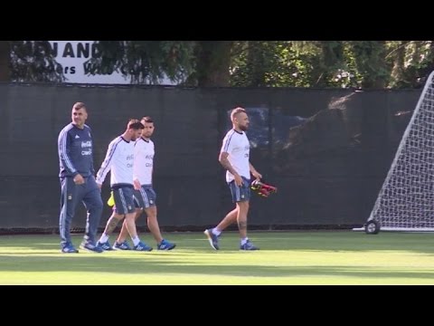 El seleccionado argentino entrenó el domingo de cara al partido frente a Bolivia, en el que no contará con Ángel Di María debido a un edema muscular.