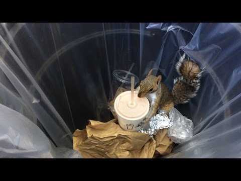 Una ardilla fisgonea en el interior de un basurero en Nueva York para encontrar comida. (Foto Prensa Libre: YouTube)