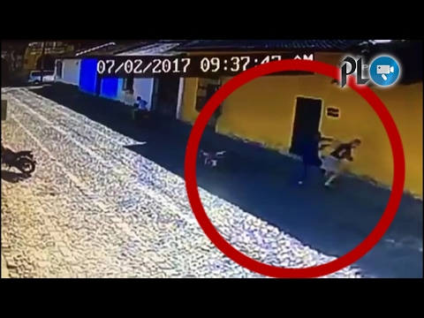 Una turista fue víctima de dos asaltantes en la 8a. calle Poniente Final y calle de Los Pasos, Antigua Guatemala. El hecho fue registrado por una cámara de videovigilancia. (Video Prensa Libre)