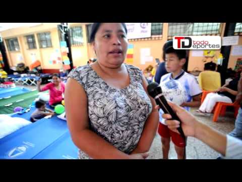 Los seleccionados nacionales visitaron el albergue de los damnificados por la tragedia de El Cambray 2. Imelda Reyes relata el drama que le tocó vivir la noche del desastre en su aldea.