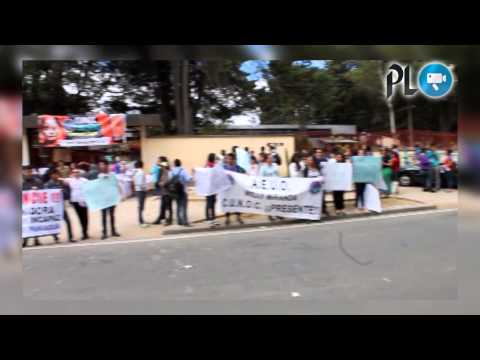 Estudiantes del Centro Universitario de Occidente, en Quetzaltenango, celebraron con consignas la captura de la exvicepresidenta Roxana Baldetti. (M. Longo, Quetzaltenango)
