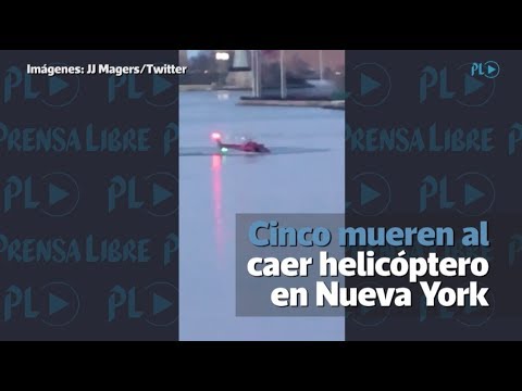 Un testigo captó el momento en que un helicóptero de turistas cayó sobre el East River, de Nueva York, Estados Unidos, este domingo, en un accidente que dejó cinco muertos.