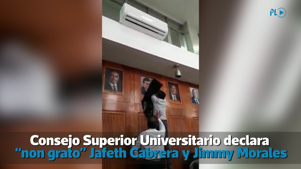 Consejo Superior Universitario declara “non grato” Jafeth Cabrera y Jimmy Morales. La decisión se tomó como demanda de la Asamblea General de Estudiantes Sancarlistas.