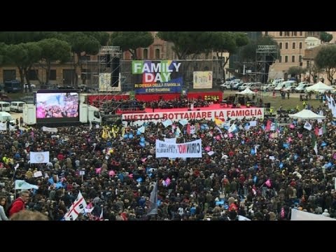 Decenas de miles de personas se manifestaron el sábado en Roma contra un proyecto de ley que reglamenta la unión civil de parejas del mismo sexo en Italia.