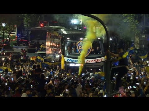 Cientos de hinchas de Boca Juniors alentaron el martes con un ‘banderazo’ en Buenos Aires a los jugadores que el domingo disputarán la final de la Copa Libertadores ante el archirrival River Plate en Madrid.