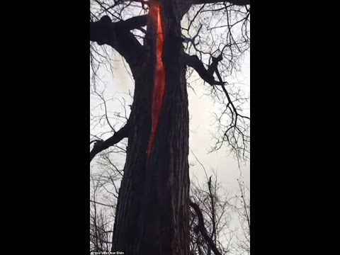 Un grupo de jóvenes encontraron en un bosque de Ohio, Estados Unidos, un árbol que emana fuego por su interior.