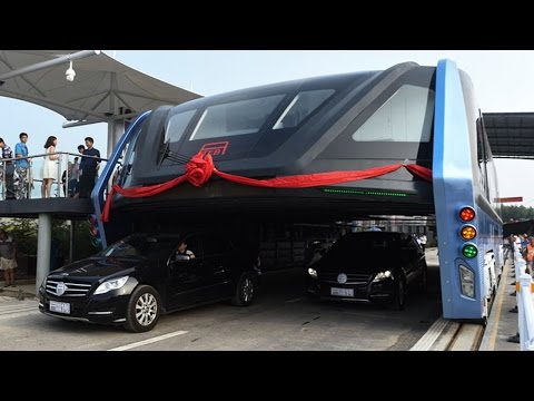 Un gigantesco autobús con forma de túnel capaz de pasar por encima de otros automóviles ha debutado de forma experimental en las calles de Qinhuangdao.
