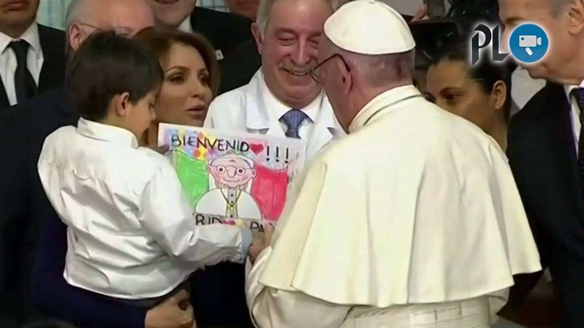 El papa Francisco, luego de suministrar una dosis de un medicamento a un niño, recibió un emotivo abrazo del menor como agradecimiento. (Video Prensa Libre: F. Magzul, AFP).