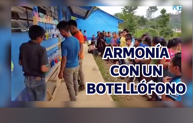 Estudiantes de la Escuela Oficial Rural Mixta Aldea Chiyó, de San Pedro Carchá, Alta Verapaz, fabricaron un botellófono, con el cual se pretende que fortalezcan sus conocimientos en el cueros de expresión musical.