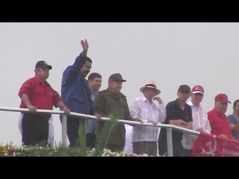 Los presidentes de Cuba y Venezuela, Raúl Castro y Nicolás Maduro, presidieron este viernes en La Habana el multitudinario desfile por el 1 de mayo, que se realizó con llamados a la unidad por el “socialismo”. (Video Prensa Libre: AFPTV)