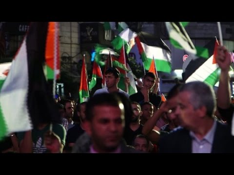 Cientos de palestinos celebraron en Ramala la izada, por primera vez en la historia, de la bandera palestina en las Naciones Unidas.