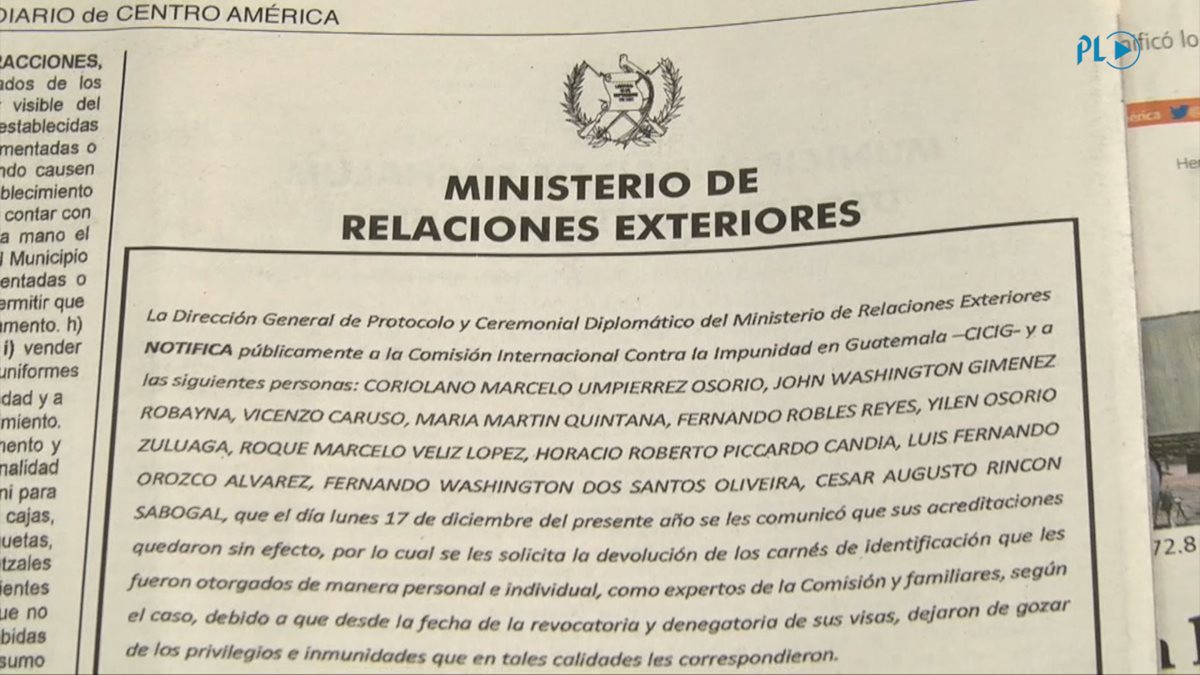 Gobierno da 72 horas a 11 investigadores de Cicig para abandonar el país