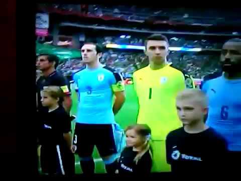 Himno de chile suena en partido de uruguay vs México. Que papelón!!