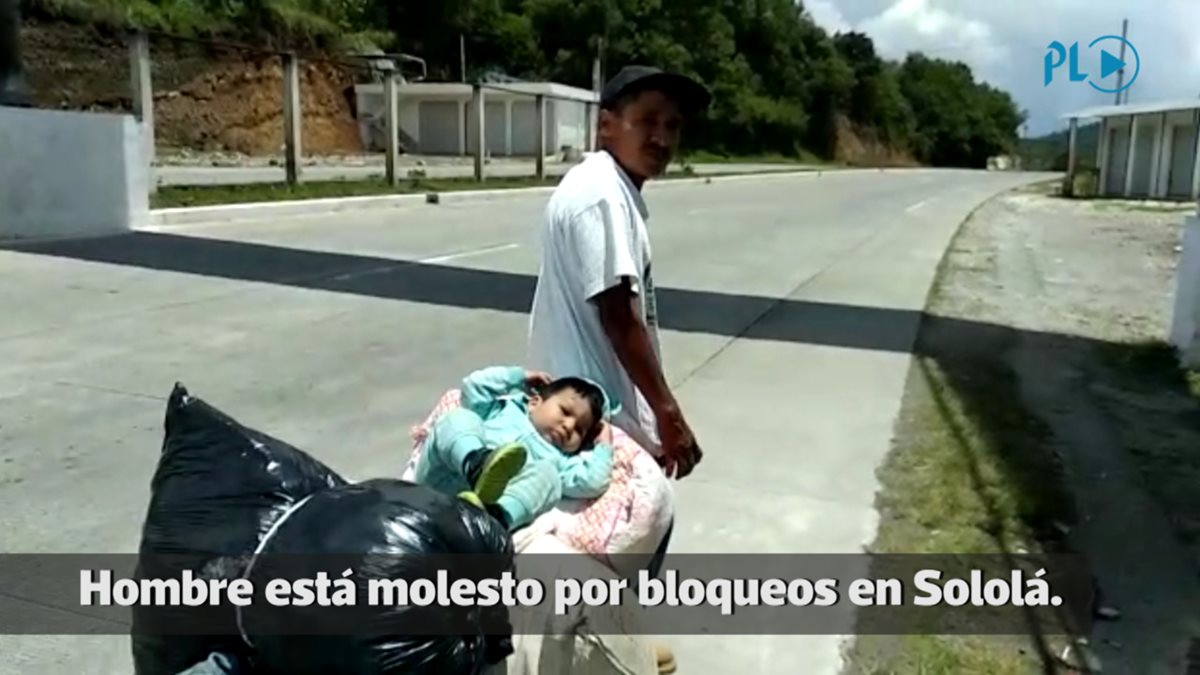 GUATEMALA. Un hombre afectado por los bloqueos de carretera en Sololá, manifestó su malestar porque tiene que caminar varios km con su hijo de dos años. Viaja de Quiché a la capital.