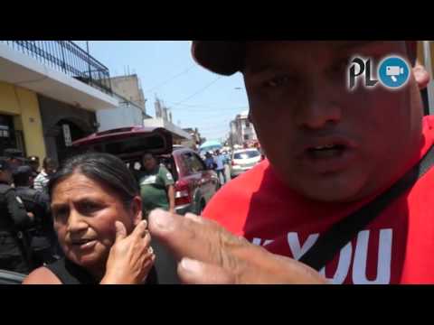 Personas que discutían con agentes de la Policía Nacional Civil en la zona 1, arremetieron contra la periodista Gabriela López quien documentaba el hecho. (Video Prensa Libre: G. López y L. Velásquez).