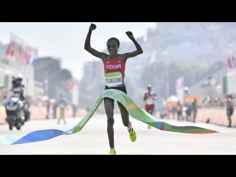 Jemima Jelagat Sumgong dio el domingo a Kenia su primer oro olímpico en el maratón femenino de Rio-2016, que algunos manifestantes trataron de perturbar al final.