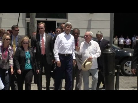 El secretario de Estado estadounidense, John Kerry, camino este viernes por las calles y plazas de La Habana Vieja.