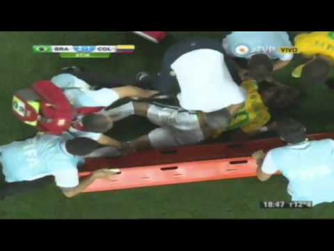 La estrella de Brasil, Neymar salió lesionado del partido donde clasificaron a la semifinal del Mundial 2014 al vencer a Colombia.Se jugaba el minuto 87 cuando el colombiano Juan Camilo Zúñiga llegó con todo por la espalda a Neymar y le dio un rodillazo