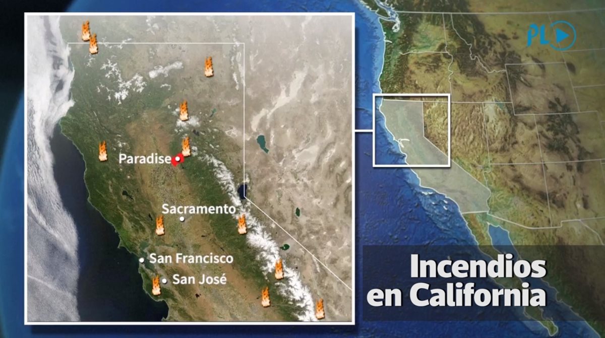 Localización de los incendios en California, EE. UU.