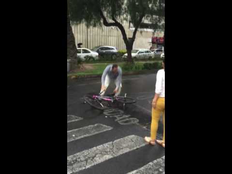 Hace una hora iba en mi bicicleta cuando me topo con esto: un chavo que después de haber sido atropellado, es insultado y golpeado por el dueño de la camioneta, que también lanza su bicicleta hasta dejarla inservible. Esto no puede seguir sucediendo, la p