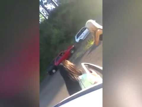 Una mujer provoca detener el tráfico y un conductor se detiene y ocasiona una colisión.