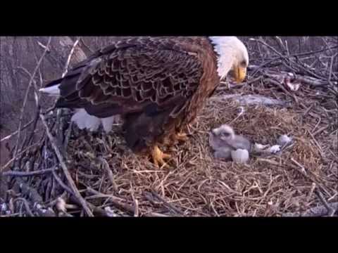 Luego de que un águila calva real pasara casi dos meses en el nido, los dos huevos han reventado. Estas imágenes fueron grabadas en vivo y tiempo real en Pennsylvania, Estados Unidos.