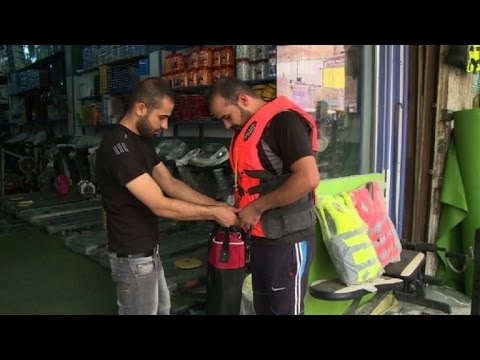 La venta de chalecos salvavidas se ha disparado en Bagdad por la demanda de iraquíes que quieren viajar a Europa en la peligrosa ruta marítima. Las clases de natación también están repuntando.