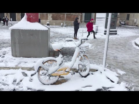 El paisaje de Roma se vio transformado por el frío el lunes, tras la primera nevada en seis años en la capital italiana.