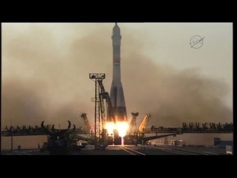 Dos astronautas y un cosmonauta despegaron este jueves desde Kazajistán a bordo de un nuevo Soyuz rumbo a la Estación Espacial Internacional.