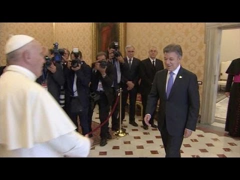 El papa Francisco ofreció su “ayuda” personal y la de la iglesia católica al presidente colombiano, Juan Manuel Santos, para el proceso de paz con la guerrilla de las FARC en Colombia. (Video Prensa Libre: AFPTV)
