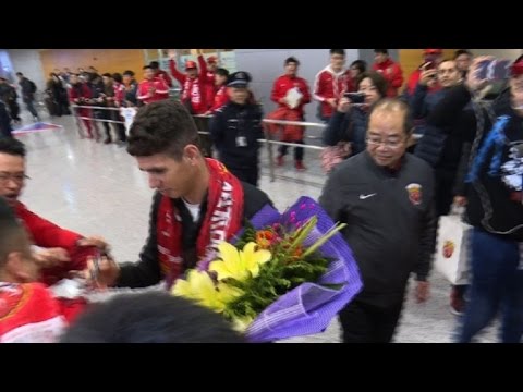 El futbolista brasileño Oscar llegó a China para jugar con el Shanghai SIPG, luego de que el club pagara al Chelsea inglés por el mediocampista de 25 años unos 63 millones de dólares, el mayor traspaso en el futbol asiático.