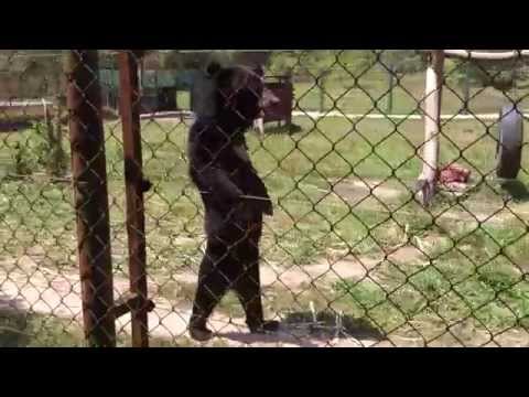Un oso que vive en el zoológico de Laos en Asia, fue grabado por la veterinaria del recinto, en el cual se observa cómo este peludo camina en dos patas de manera similar a la de los humanos.