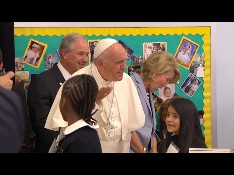 Papa visita escuela de Harlem