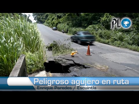 Agujero en asfalto pone en peligro a automovilistas que circulan por el kilómetro 96.5 de la ruta al suroccidente, en Santa Lucía Cotzumalguapa, Escuintla.