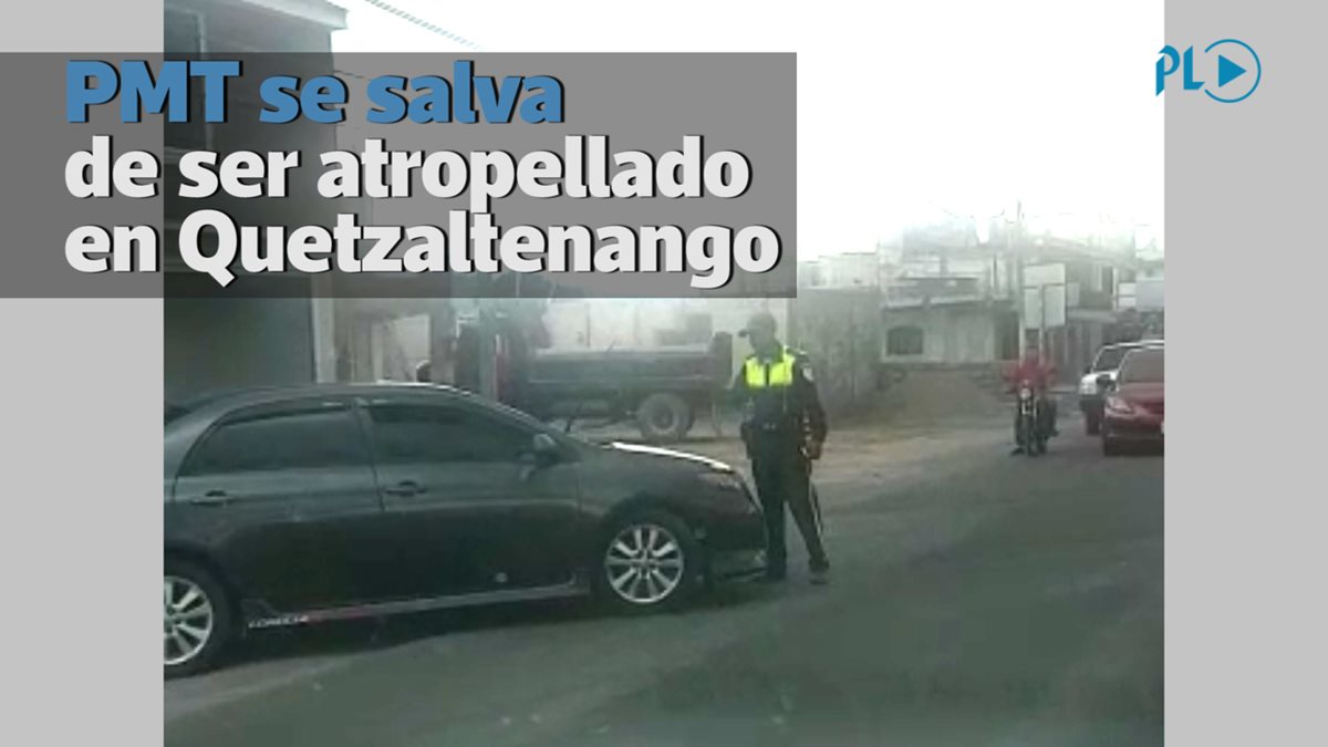 PMT se salva de ser atropellado por un vehículo en Quetzaltenango