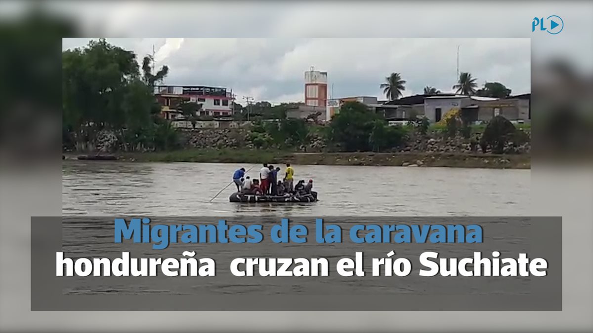 Algunos de los migrantes hondureños que salieron de su país en caravana, desde el sábado pasado, han atravesado el río Suchitate hacia México, luego de cinco días de caminata.