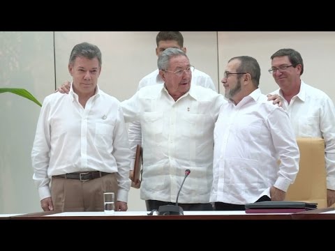 El presidente de Colombia, Juan Manuel Santos, y el jefe de la guerrilla de las FARC, Timoleón Jiménez, se comprometieron este miércoles a firmar en un plazo máximo de seis meses un acuerdo de paz.