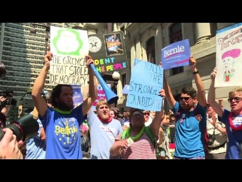En el primer día de la Convención Nacional Demócrata, manifestantes protestaron en apoyo a Bernie Sanders. Mientras tanto, el senador de Vermont llamó a sus seguidores a votar por Hillary Clinton en noviembre.