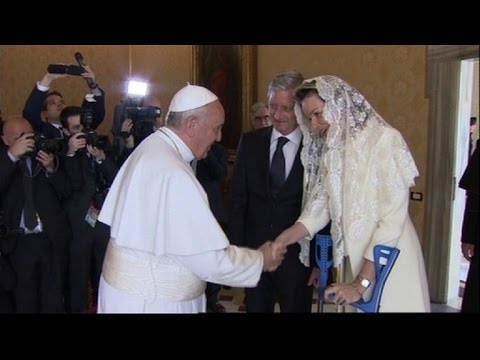 La reina de Bélgica, Matilde, acompañada por su esposo, el rey Felipe, compareció el lunes en el Vaticano con muletas para su primer encuentro oficial con el papa Francisco. (Video Prensa Libre: AFP).