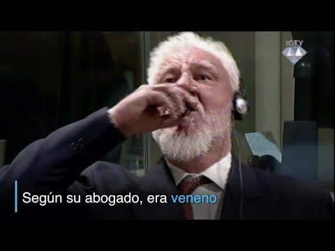 Un exalto responsable de las fuerzas croatas de Bosnia murió el miércoles luego de ingerir veneno en la sala de audiencia del Tribunal Penal, tras escuchar su sentencia. VERSION SUBTITULADA