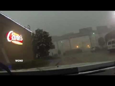 Un tren fue captado por un conductor al momento que cayó al suelo tras ser empujado por los fuertes vientos de la tormenta que azota a Luisiana.