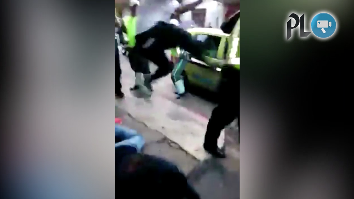 Usuarios en redes sociales comparten video de pelea entre agentes municipales y supuestos taxistas.