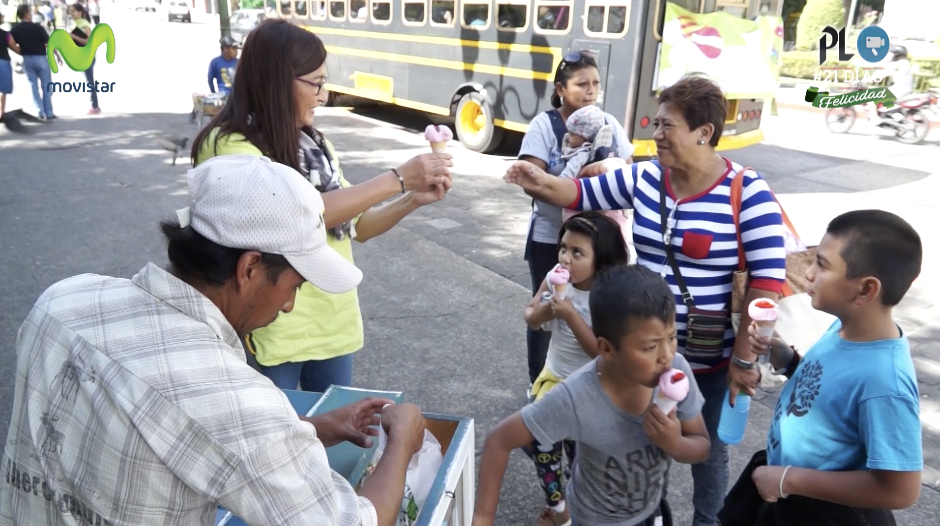 Manuela realizó su gesto de bondad en la campaña #21DíasDeDarFelicidad al comprar toda la venta de helados a don José y regalarlos a las personas que visitan la Plaza Constitución.