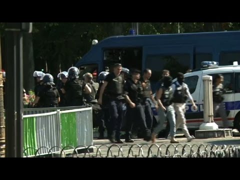 Un hombre armado embistió el lunes con su vehículo un furgón de la policía en Campos Elíseos de París. El atacante murió en el incidente descrito por las autoridades como un “intento de atentado”.**ATENCIÓN CLIENTES: INCLUYE IMÁGENES DE UN CADÁVER**
