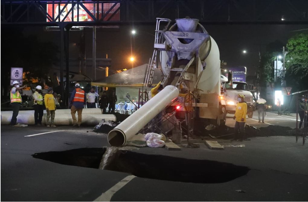 Las autoridades y técnicos comenzaron esta noche a vaciar el llamado lodocreto dentro de la caverna en el kilómetro 15 de la ruta al Pacífico, en Villa Nueva.